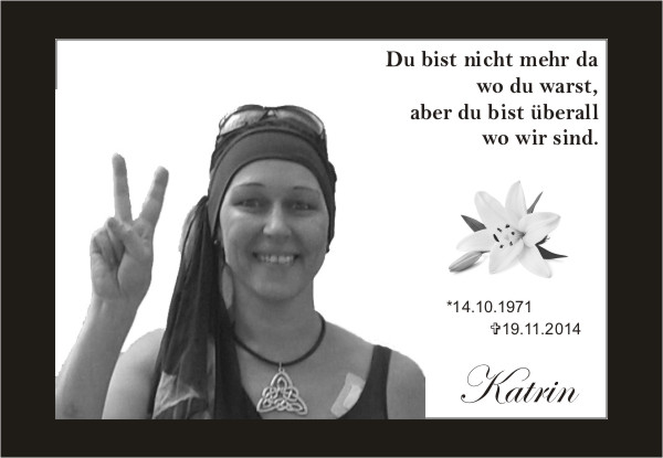 Katrin wird für immer ein Teil von uns bleiben. Eine Gedenkseite mit Kondolenzbuch wurde von mir für Katrin eingerichtet.